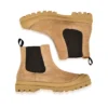 Craquez pour la chelsea boots en cuir suédé Authentique. C’est une boots pour femme munie d’une tige en cuir suédé beige robuste et souple, montée sur une semelle crantée très confortable en caoutchouc naturel. Son élastique sur le côté facilite le chaussant.