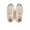Nouveauté de la saison, la basket pour femme Authentique, ce modèle aux allures vintage, se pare d’une une toile de coton recyclé, plongée au préalable dans un bain de teinture bleu ciel pour un rendu délavé. Les légères variations de teinte confèrent à chaque chaussure un caractère unique. Entièrement ton sur ton, elle est montée sur une semelle colorée en caoutchouc naturel. C’est une chaussure basse montée sur une semelle en caoutchouc naturel vulcanisée grâce à notre savoir-faire dans nos ateliers espagnols. Sa semelle crantée est flexible et confortable.