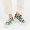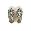Cette saison, l’Authentique Pataugas version basse se pare de motifs camouflages vert émeraude WALKIE TALKIE. Ce textile tissé en France avec des fils recyclés apporte un savoir-faire artisanal à cette chaussure femme. Sa semelle crantée légendaire est très souple et ultra-flexible. Cette chaussure en toile se déclinera parfaitement avec votre dressing estival.