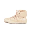 Craquez pour la basket montante Ayza qui est revisitée cet hiver avec un cuir blanc irisé et lumineux. A mi chemin entre une basket haute et une boots, cette chaussure nous séduit par sa tige en cuir robuste, sa semelle fine très confortable et son col rabattable qui vous permettra de la porter retournée ou non selon vos envies du jour. Son zip latéral est très pratique pour vous faciliter le chaussant. Ce modèle taille grand.
