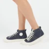 La basket femme ETCHE marine est LA nouveauté de cette saison. Cette basket montante est munie d’une tige bleu marine en coton recyclé. C’est une chaussure légère, idéale pour allier légèreté, confort et style. C’est une basket montée sur une semelle en caoutchouc naturel ce qui lui permet d’être plus flexible et plus souple. Sa semelle intérieure est amovible ce qui est très pratique si vous souhaitez y placer les vôtres.