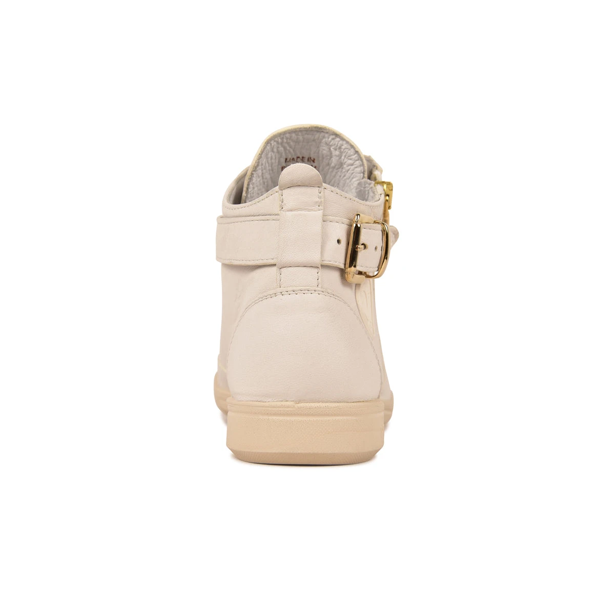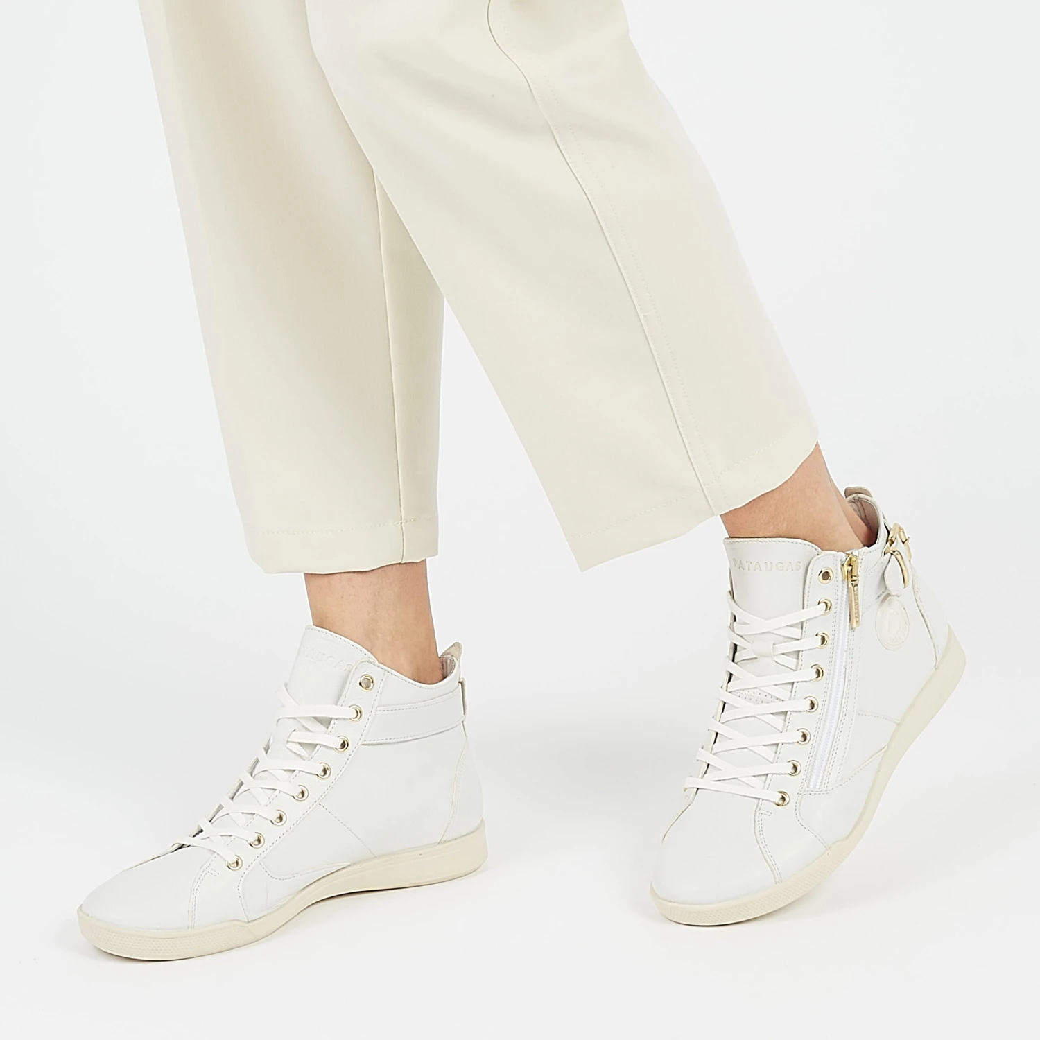 La basket montante PALME est la chaussure parfaite pour vous accompagner toute la saison. Cette basket femme est composée d’un cuir fin et résistant et est montée sur une semelle très légère et flexible. Sa couleur blanche est parfaite pour donner de l’éclat à vos tenues. Petit plus: cette chaussure est munie d’une fermeture éclair sur le côté afin de vous éviter de faire vos lacets.