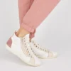 Cette saison découvrez la basket montante PALME retravaillée. Nouvelle forme pour notre Palme sans boucle! Celle-ci emprunte les codes du sport ambiance tennis avec son cuir blanc légèrement perforé et ses accents couleurs. Un petit empiècement perforé lui a été apporté afin d’ajouter une touche estivale et respirante. Véritable référence en terme de confort grâce à sa semelle en injecté ultra-souple, le modèle PALME vous apportera une grande flexibilité dans vos mouvements. Sa tige en cuir fin et léger permet à cette chaussure d’épouser parfaitement la morphologie de votre pied. Son mix de cuirs est élégant et sa fermeture éclair est très pratique pour faciliter le chaussant.